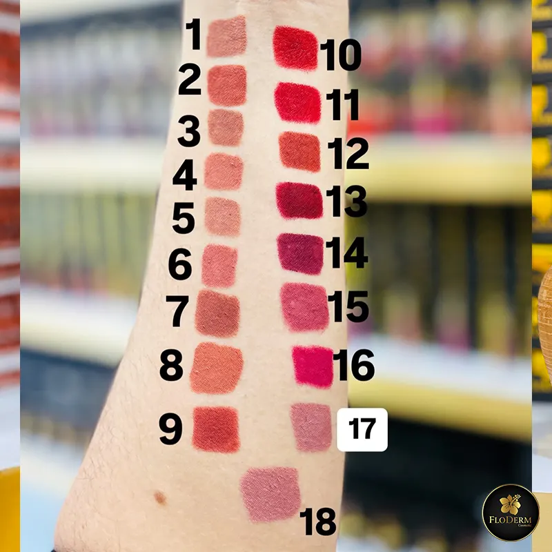با داشتن 18 رنگ حرفهای و سالنی، رژلب مدادی فلودرم پاسخگوی هر سلیقهای است. از رنگهای طبیعی روزمره گرفته تا قرمزها و بنفشهای خاص برای مجالس و مهمانیها، شما میتوانید رنگ دلخواهتان را انتخاب کنید. ترکیب رنگها بهگونهای است که برای انواع تناژ پوستی مناسب بوده و ظاهری لوکس به لبها میبخشد.